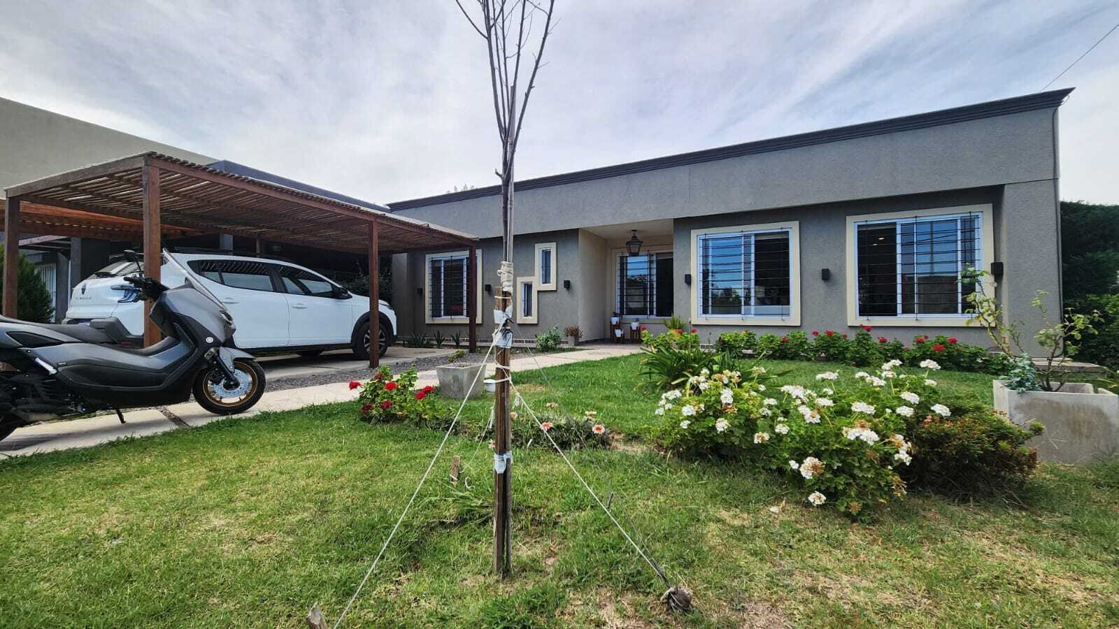 Bº CERRADO LAS CASUARINAS: Casa 3amb. En Planta Baja Con Pileta. APTO CREDITO. SIN EXPENSAS. Distribuida en su totalidad en planta baja. Living comedor con cocina incorporada mediante barra desayunadora, hall de paso que podría usarse de escritorio, 2 dormitorios, el principal en suite, ambos con placares y otro baño completo. En el exterior cuenta con galería semi-cubierta, lavadero, baño, parrilla semi-cubierta y gran jardín pileta con filtro. Cochera cubierta. Techo de chapa, termotanque, calefacción por tiro balanceado, pisos cerámicos. Gas natural y electricidad. Cloaca y agua por pozo. El ingreso al barrio es por portón automatizado con control a distancia, en total son 44 lotes. Próximo a Panamericana. Las medidas y datos son a título orientativo, las reales surgirán de los títulos correspondientes. Diego Ferraro, C.S.I. 6153.